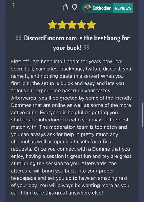 The Discord Findom Community is second to none. We take pride in being the only Elite Financial Domination Community that is catered to the financial submissive/buyer experience and that is the only Findom Community inclusive to Female Dommes and Male Cashmasters. Our reputation speaks for itself.